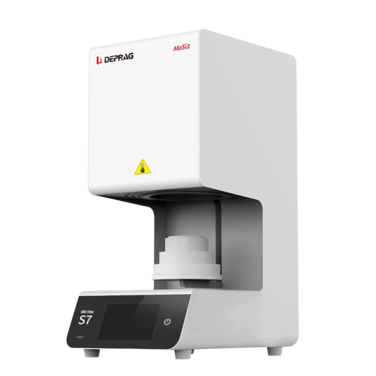 Piec do szybkiego spiekania DEPRAG S7 to wydajne rozwiązanie dedykowane stomatologii typu „same-day”, umożliwiające spiekanie tlenku cyrkonu w czasie od 20 do 90 minut. Dzięki inteligentnemu systemowi kontroli temperatury (do 1650°C) oraz precyzji rzędu ±1°C, urządzenie gwarantuje najwyższą jakość uzupełnień przy maksymalnej oszczędności czasu. Mimo kompaktowych wymiarów, trójwarstwowy tygiel pozwala na jednoczesną obróbkę nawet 100 punktów protetycznych, co czyni go idealnym wyborem zarówno dla klinik, jak i dużych laboratoriów. Całość dopełnia intuicyjny ekran dotykowy, 200 gotowych programów pracy oraz funkcja automatycznego wznowienia procesu po awarii zasilania, co zapewnia pełne bezpieczeństwo i wygodę użytkowania.